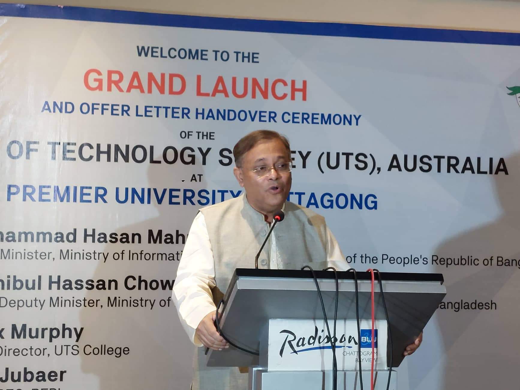 শনিবার (১৫ অক্টোবর) রাতে চট্টগ্রাম নগরীর হোটেল রেডিসন ব্লু’র নীলগিরি হলে চট্টগ্রামের প্রিমিয়ার ইউনিভার্সিটিতে ইউনিভার্সিটি অব টেকনোলজি-সিডনি (ইউটিএস) কোর্সের উদ্বোধনকালে প্রধান অতিথির বক্তব্যে তথ্যমন্ত্রী এসব কথা বলেন।