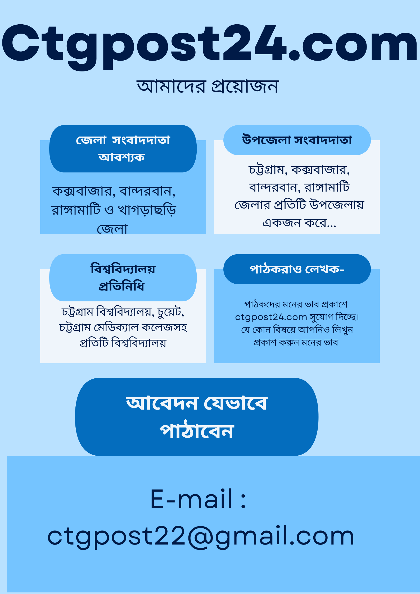 জেলা ও থানা প্রতিনিধি আবশ্যক