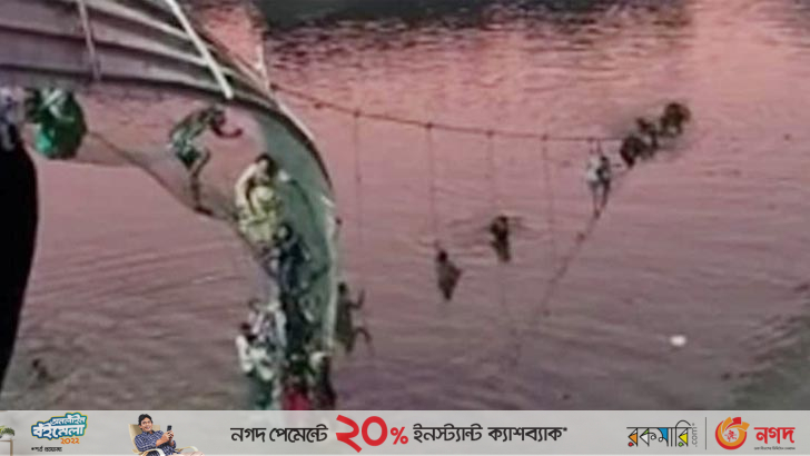 রোববার (৩০ অক্টোবর) সন্ধ্যার দিকে সেতু ভেঙে শতাধিক মানুষ নদীতে পড়ে যান বলে এনডিটিভির খবরে বলা হয়েছে।