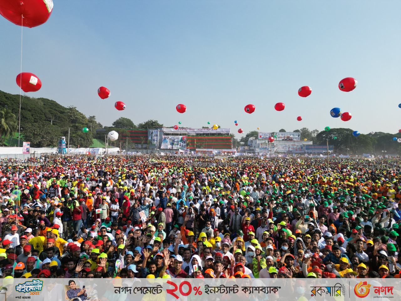 ড. হাছান মাহমুদ বলেন, আজকে সমগ্র চট্টগ্রাম শহরে মানুষের ঢেউ জেগেছে। সমুদ্রপাড়ের চট্টগ্রামের সাথে যেন জনতার ঢেউ একাকার হয়ে গেছে। আর পলোগ্রাউন্ডে রঙবেরংয়ের বর্ণিল ছটা যেন আজকে রংধনুর ছটায় পরিণত হয়েছে। এই জনসভায় যতনা মানুষ তার চেয়ে আট-দশগুণ লক্ষ লক্ষ মানুষ এই জনসভার বাইরে অবস্থান করছে।