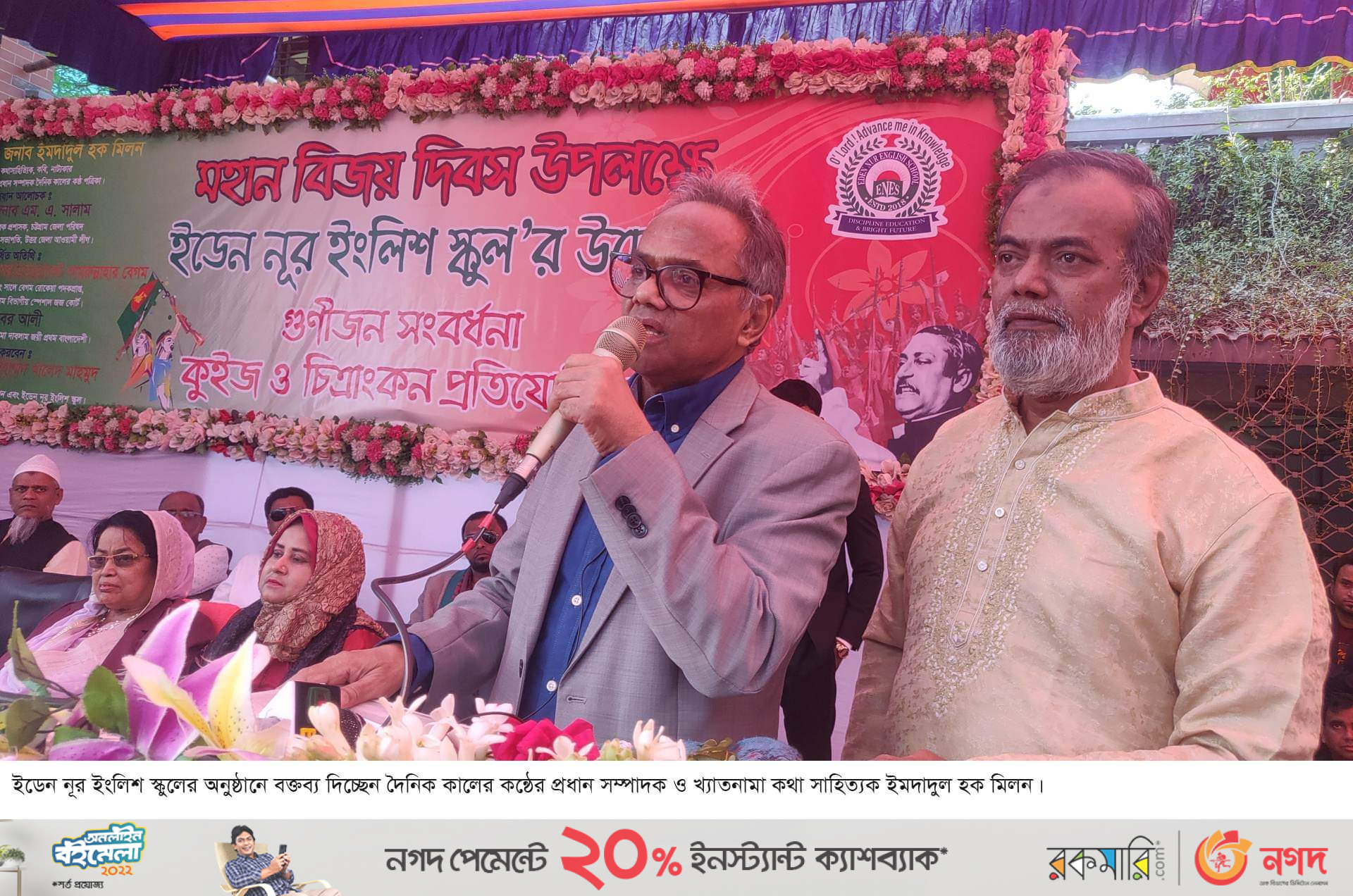 ইডেন নূর ইংলিশ স্কুলের চেয়ারম্যান মোহাম্মদ খালেদ মাহমুদের সভাপতিত্বে অনুষ্ঠানে প্রধান বক্তা ছিলেন চট্টগ্রাম জেলা পরিষদের চেয়ারম্যান এম এ সালাম। বক্তব্য রাখেন সংবর্ধিত অতিথি বেগম রোকেয়া পদক প্রাপ্ত ও বিশিষ্ট আইনজীবী মানবাধিকার নেত্রী অ্যাডভোকেট কামরুন্নাহার বেগম, প্রথম বাংলাদেশী হিসাবে এভারেস্টের “আমা দাব্লাম” পর্বতারোহী ডাক্তার বাবর আলী, হাটহাজারী উপজেলা চেয়ারম্যান রাশেদুল ইসলাম। স্বাগত বক্তব্য দেন ইডেন নূর ইংলিশ স্কুলের অধ্যক্ষ মাহনূর তাছনীম।