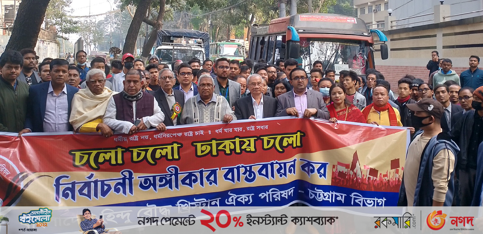 হিন্দু বৌদ্ধ খ্রিস্টান ঐক্য পরিষদের ডাকে ঢাকা অভিমুখী রোড মার্চ শুরু