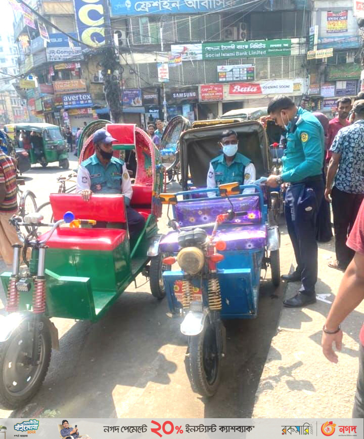 সিএমপি’র ট্রাফিক দক্ষিণের অভিযানে ২০টি অবৈধ ব্যাটারী রিক্সা আটক