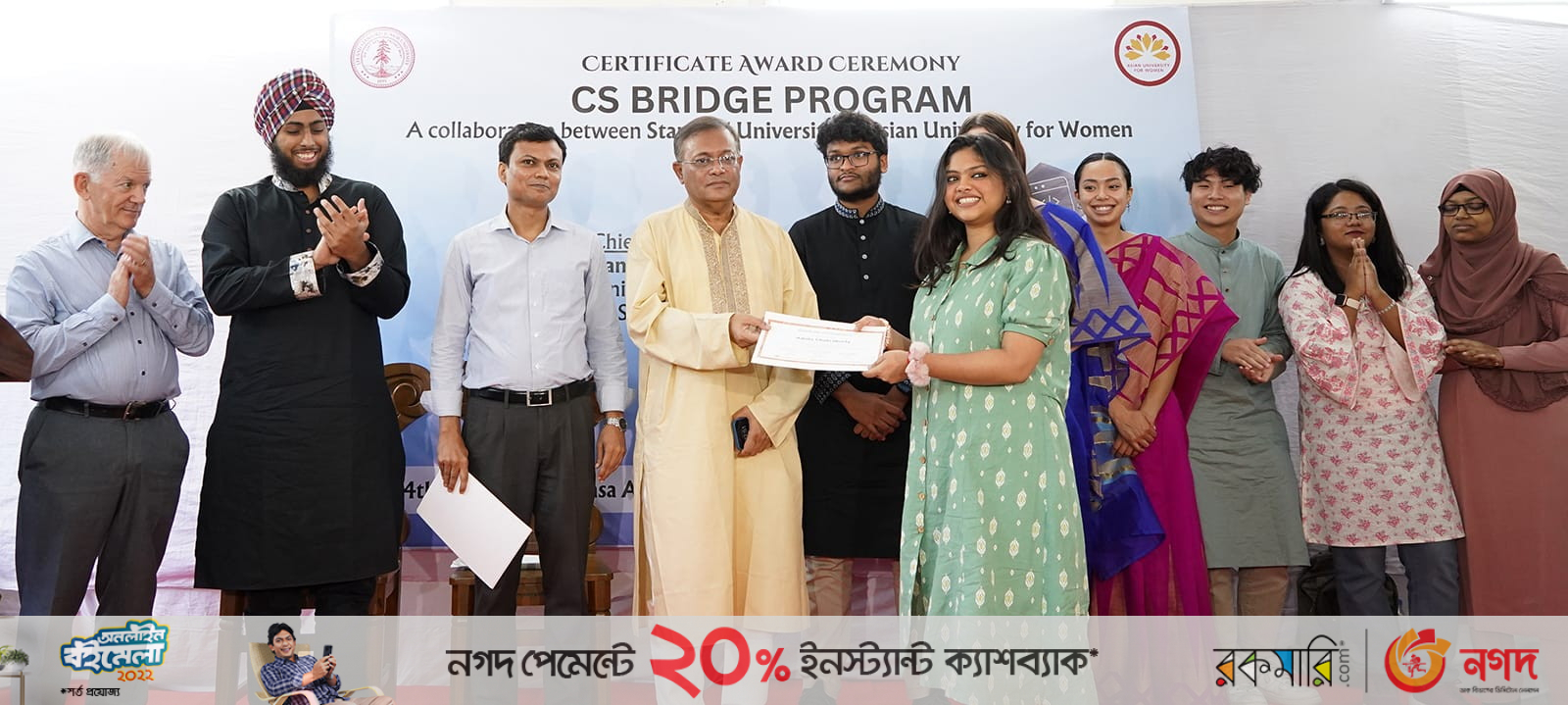 অনুষ্ঠানে উপ-উপাচার্য ডেভিড টেলর, কম্পিউটার সায়েন্স ব্রিজ প্রোগাম-এর পরিচালক অধ্যক্ষ শাম্স ফররুখ আহমেদ ও অনলাইনে ইউনিভার্সিটির উপাচার্য ড. রুবানা হক ও প্রফেসর শাহাদাত হোসেন প্রমুখ বক্তৃতা করেন। অনুষ্ঠানশেষে কোর্সের শিক্ষার্থীদের মাঝে সার্টিফিকেট প্রদান করেন তথ্য ও সম্প্রচার মন্ত্রী।