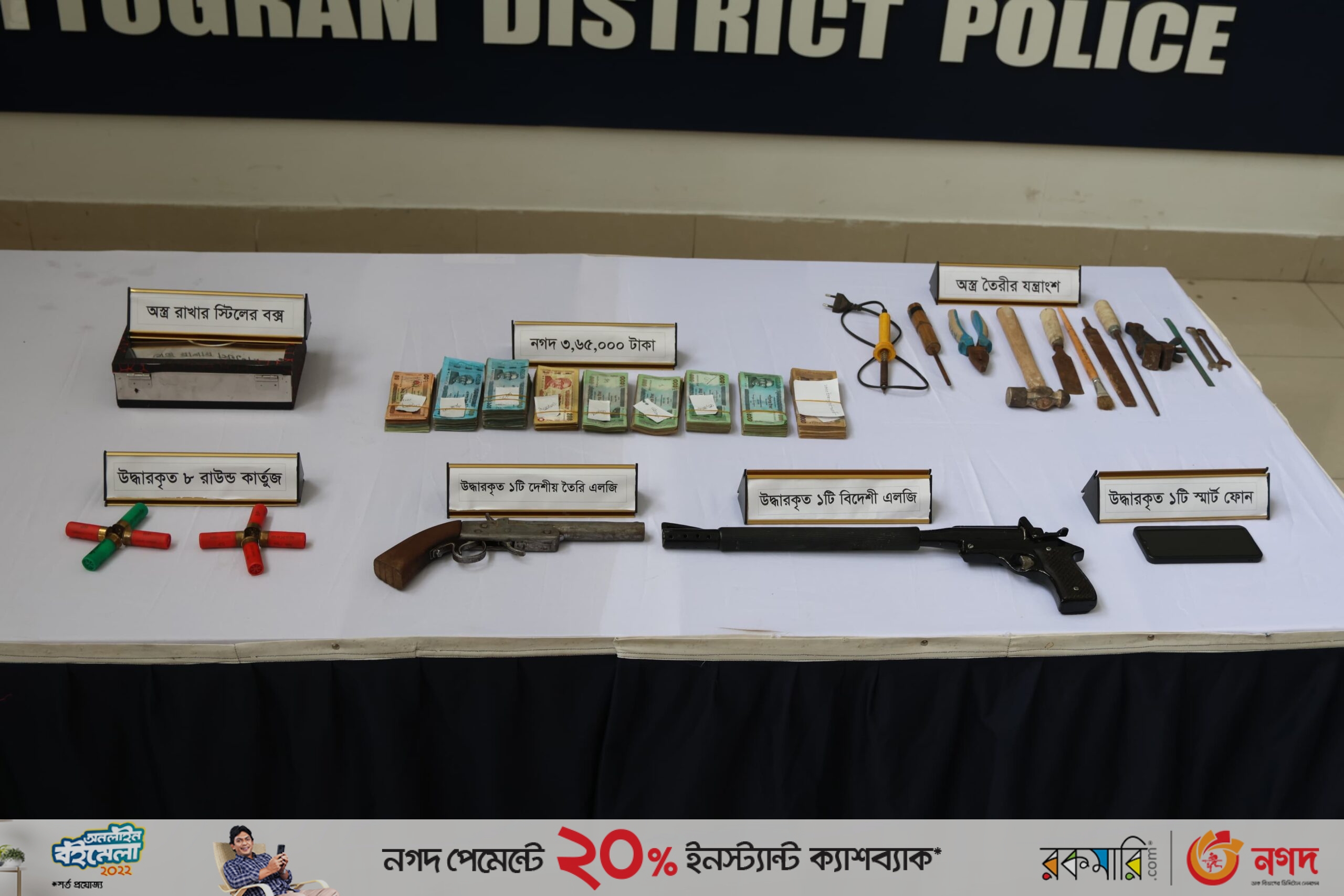 চট্টগ্রাম জেলায় চলতি বছরের জানুয়ারি থেকে ১৭ জুলাই পর্যন্ত বিভিন্ন অভিযানে উল্লেখযোগ্য পরিমাণ অবৈধ অস্ত্র ও গুলি উদ্ধার করেছে জেলা পুলিশ। জেলার ১৭টি থানায় পরিচালিত এসব অভিযানে উদ্ধার করা হয়েছে ৬৯টি দেশি-বিদেশি আগ্নেয়াস্ত্র, ২৩০টি অন্যান্য দেশীয় অস্ত্র এবং ২০০টি গুলি ও কার্তুজ। এসব মামলায় অস্ত্র আইনে মোট ৫২টি মামলা রুজু করা হয়েছে এবং গ্রেফতার করা হয়েছে ৭০ জনকে।