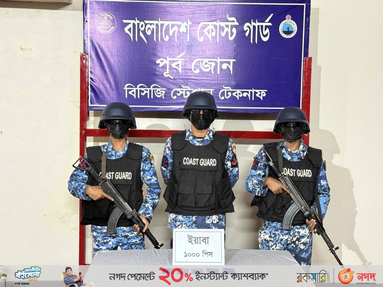 পরবর্তীতে ওই এলাকা তল্লাশি করে পরিত্যক্ত প্যাকেট থেকে আনুমানিক ৫ লাখ টাকা মূল্যের ১ হাজার পিস ইয়াবা উদ্ধার করে কোস্ট গার্ড সদস্যরা।