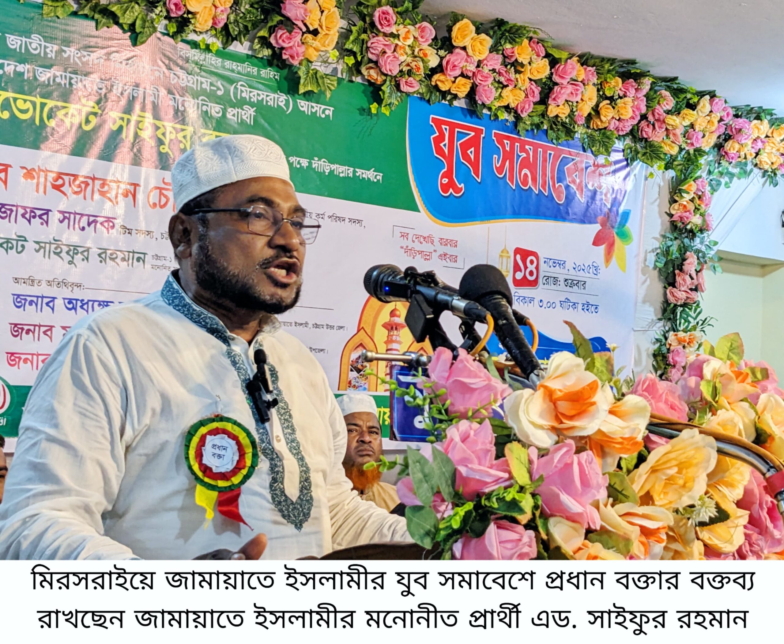 প্রধান বক্তা দাড়িপাল্লা প্রতীকের মনোনীত প্রার্থী এডভোকেট সাইফুর রহমান বলেন, মিরসরাইয়ের প্রত্যন্ত অঞ্চল এখনো অবহেলিত। সড়কের বেহাল অবস্থা, সরকারি হাসপাতালে চিকিৎসাসেবার সংকট, জেলে সম্প্রদায়ের দুর্দশা, চুরি-ডাকাতি, আইনশৃঙ্খলার অবনতি ও শালিসি বাণিজ্যের মতো সমস্যাগুলো তুলে ধরে তিনি বলেন, “এসব আর চলতে দেওয়া যায় না। আমরা ইনসাফভিত্তিক সমাজ গড়ে তুলব।”