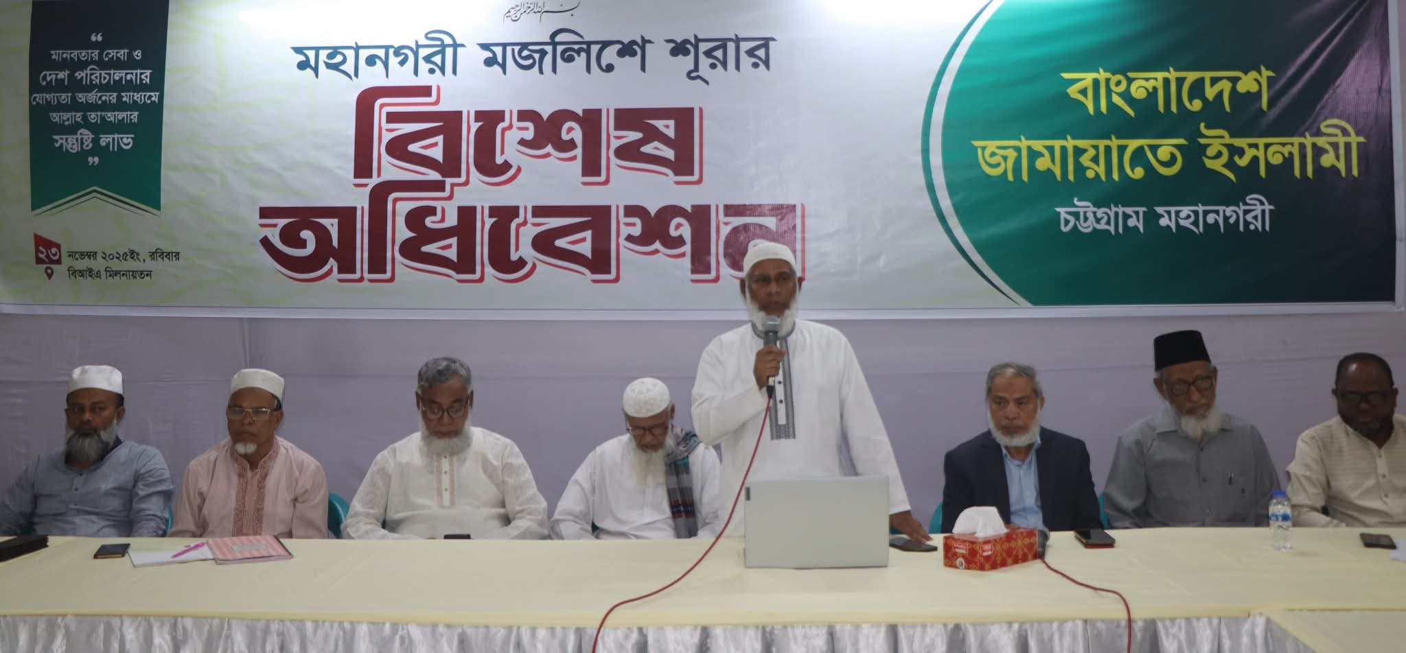 রবিবার সন্ধ্যা৭ টায় দেওয়ান বাজারস্থ বাংলাদেশ ইসলামী একাডেমি (বিআইএ) মিলনায়তনে চট্টগ্রাম মহানগরীর মজলিসে শূরার বিশেষ অধিবেশন সভাপতির বক্তব্যে তিনি এসব কথা বলেন।