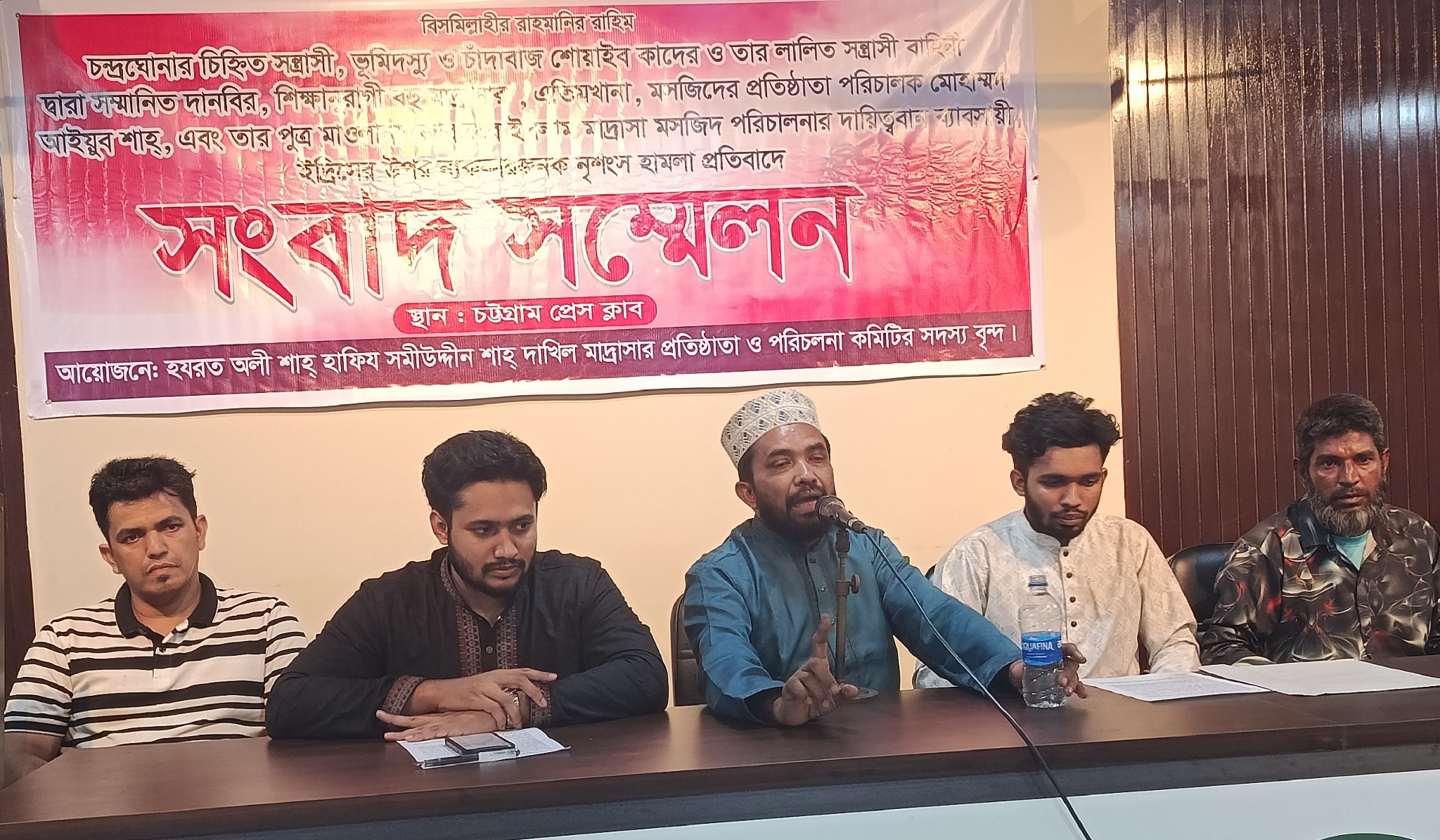 লিখিত বক্তব্যে তিনি বলেন, একাধিক মসজিদ, মাদ্রাসা ও এতিমখানার প্রতিষ্ঠাতা ও পরিচালক মো. আইয়ুব শাহ (৬২) তার পরিবারের সদস্যদের নিয়ে বৃহস্পতিবার মাদ্রাসায় আয়োজিত বাৎসরিক ফাতেহা মাহফিলে উপস্থিত হন। এ সময় তারা দেখতে পান, তাদের ক্রয়কৃত জমিতে স্থানীয় দুষ্কৃতিকারী সোয়েব কাদের, তার ভাই আরিফ ও পিতা ফজল কাদের তারকাঁটা দিয়ে জমি দখল করে রেখেছে।